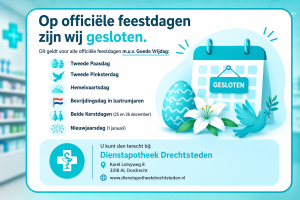 Uw medicijnen ophalen buiten openingstijden? Maak dan gebruik van onze 24-uurs service. Wij leggen uw medicijnen voor u klaar in onze automaat. U kunt deze dan ophalen wanneer u het uitkomt.